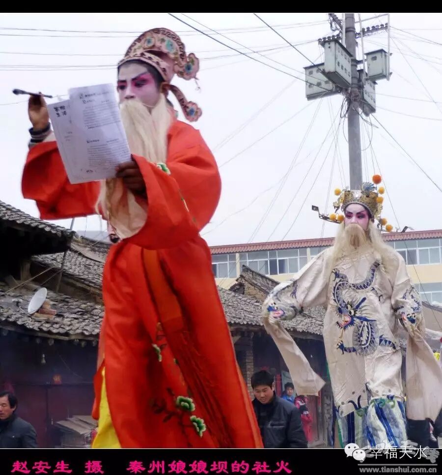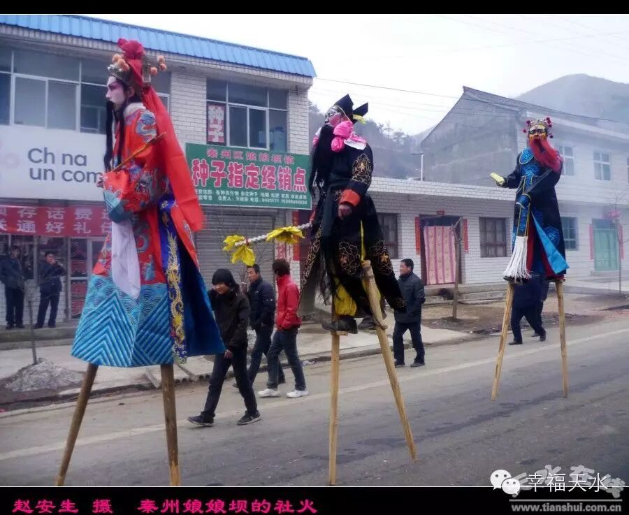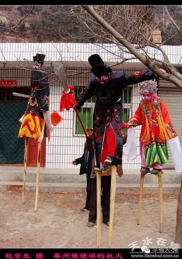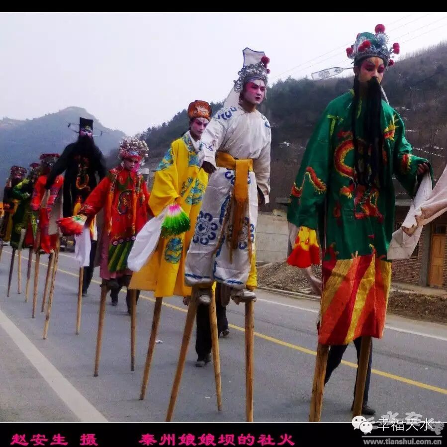 天水橫跨黃河、長江兩大流域,因此天水的社火也體現出內容的豐富和形式的多樣性。這里除了白天的白社火,還有一種以演唱見長的黑社火,也就是晚上的社火。