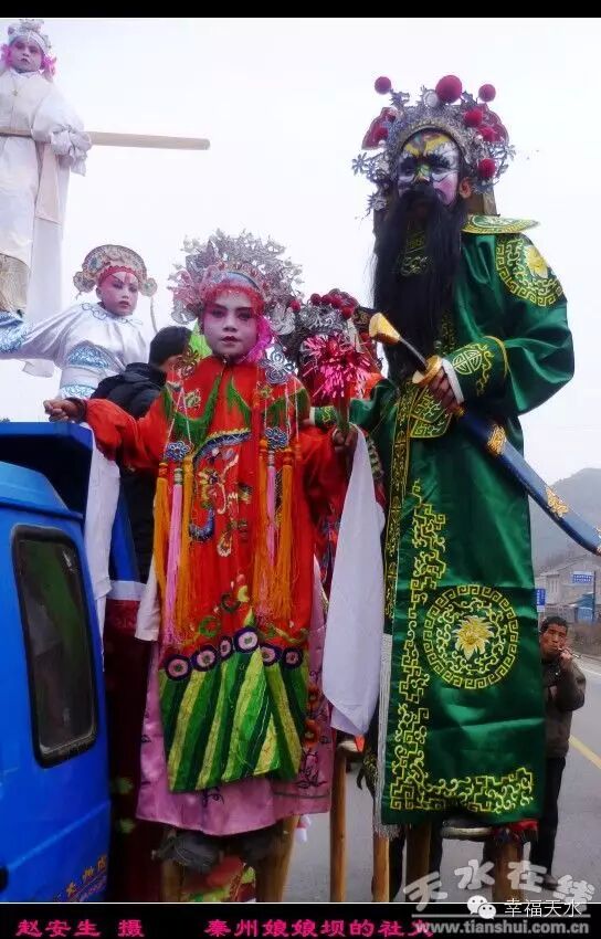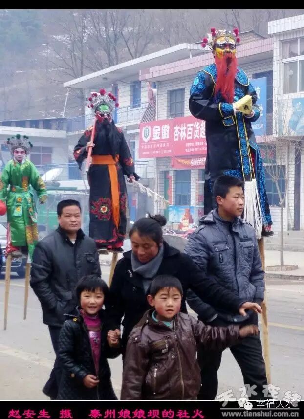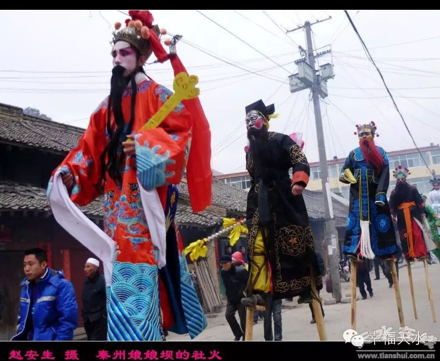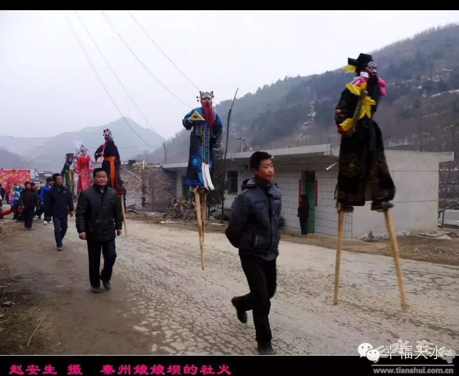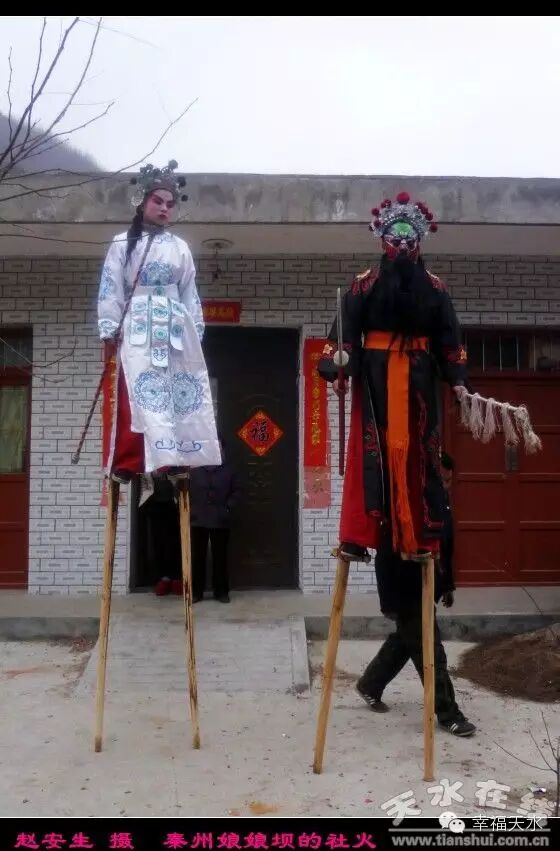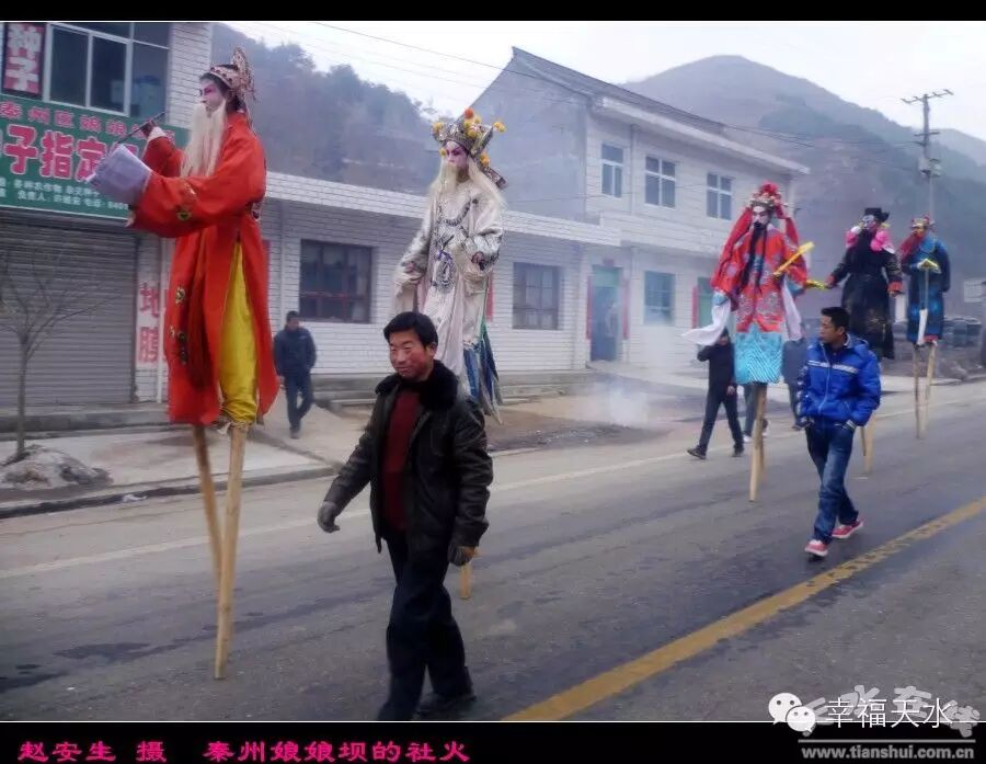 天水橫跨黃河、長江兩大流域,因此天水的社火也體現出內容的豐富和形式的多樣性。這里除了白天的白社火,還有一種以演唱見長的黑社火,也就是晚上的社火。